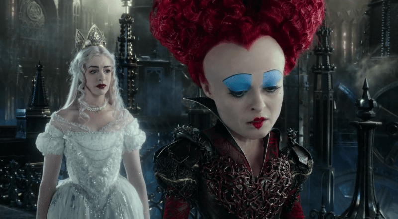 - Красную Королеву воплотила Хелена Бонэм Картер, а Белую Королеву — Энн Хэтэуэй.