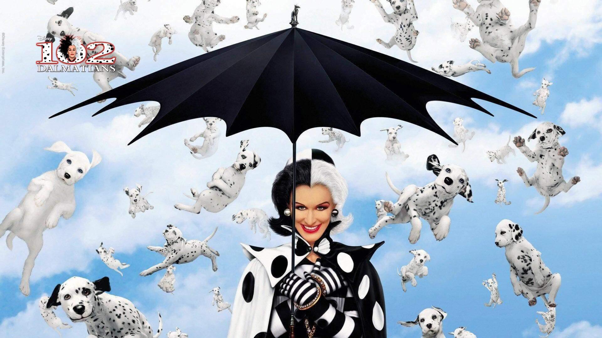 В фильме «102 далматинца» (2000) зрителей ждет захватывающее продолжение истории о пятнистых героях. Роджер и Анита живут счастливо со своими далматинцами, но мирное существование нарушается появлением нового злодея — модного дизайнера Круэллы Де Виль.